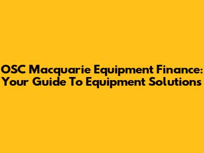 OSC Macquarie Equipment Finance: Your Guide To Equipment Solutions